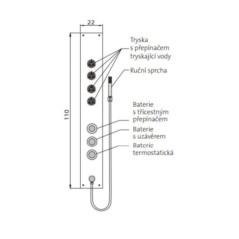TEIKO rohový sprchový masážny panel 110 x 22 cm BOSS ECO Therm T1 V262110N92T02021Rozmery: 110 x 22 cm