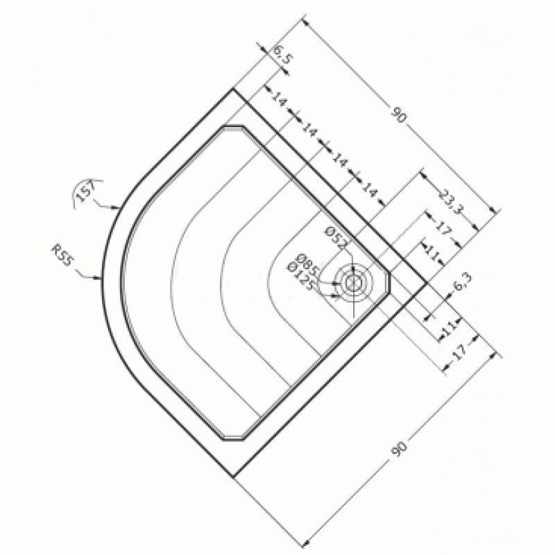 Štvrťkruhová sprchová vanička SANO 90 sa vyrába v prevedení s protišmykovou úpravou. Sprchová vanička SANO 90 je vhodná v kombinácii so sprchovými zástenami s radiusom R55.