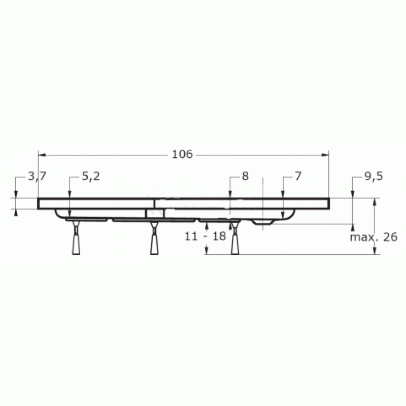 Sprchovú vaničku SANO 90 je možné doplniť kovovými samonosnými nohami, alebo plastovými nožičkami (nie sú samonosné - nutná podmurovka).