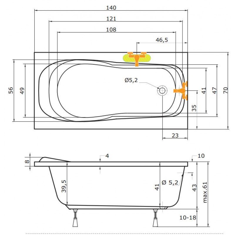TEIKO Vaňa Alea obdĺžniková 140 x 70 cm, akrylátová, biela V112140N04T01001Rozmery: 140 x 70 x 41 cm
