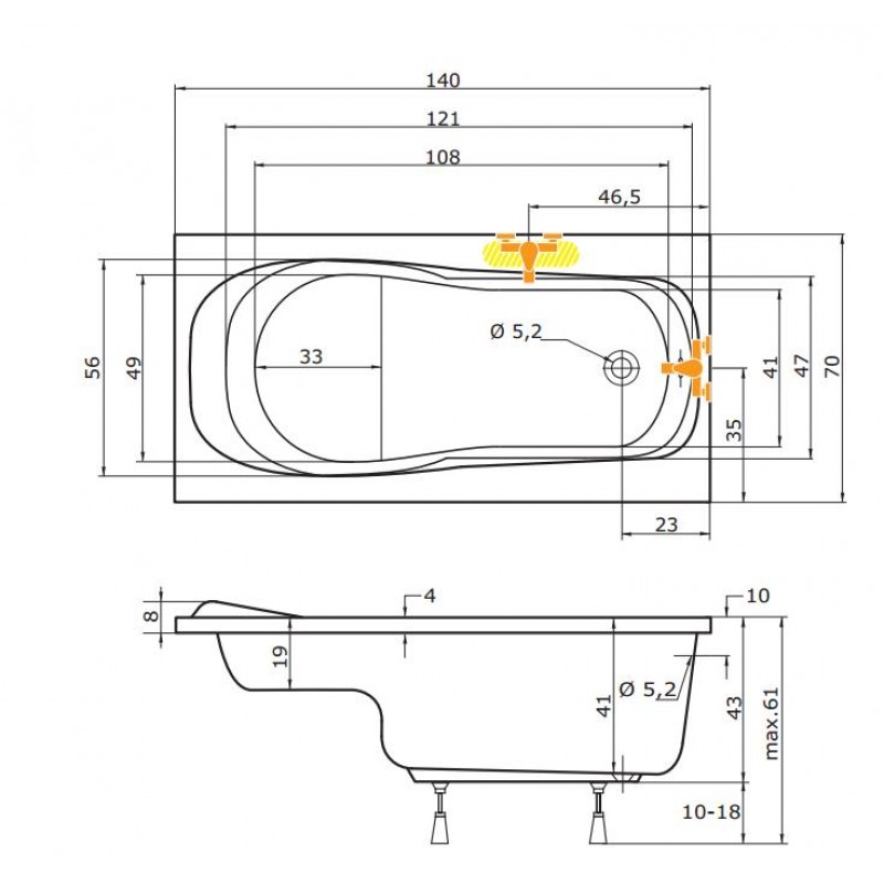 TEIKO Vaňa Alea-S obdĺžniková 140 x 70 cm, akrylátová, biela V112140N04T02001Rozmery: 140 x 70 x 41 cm