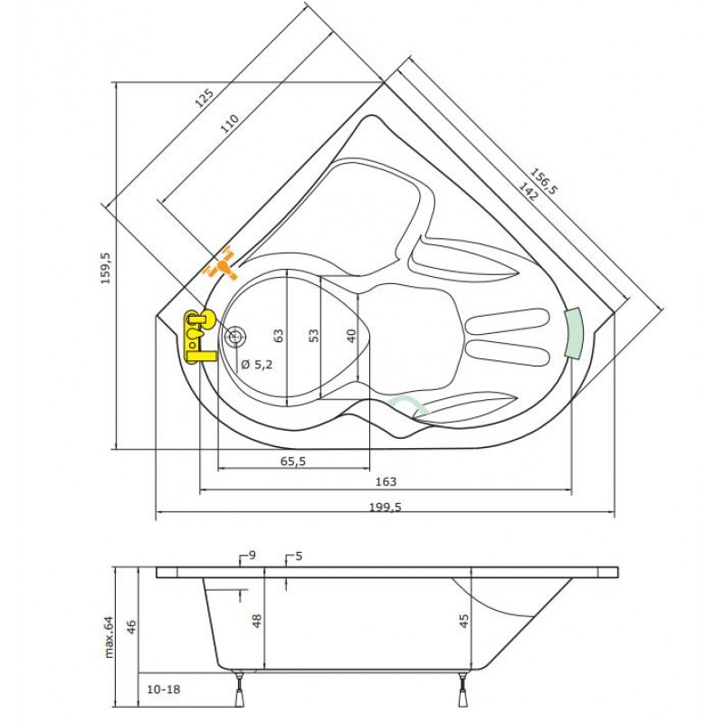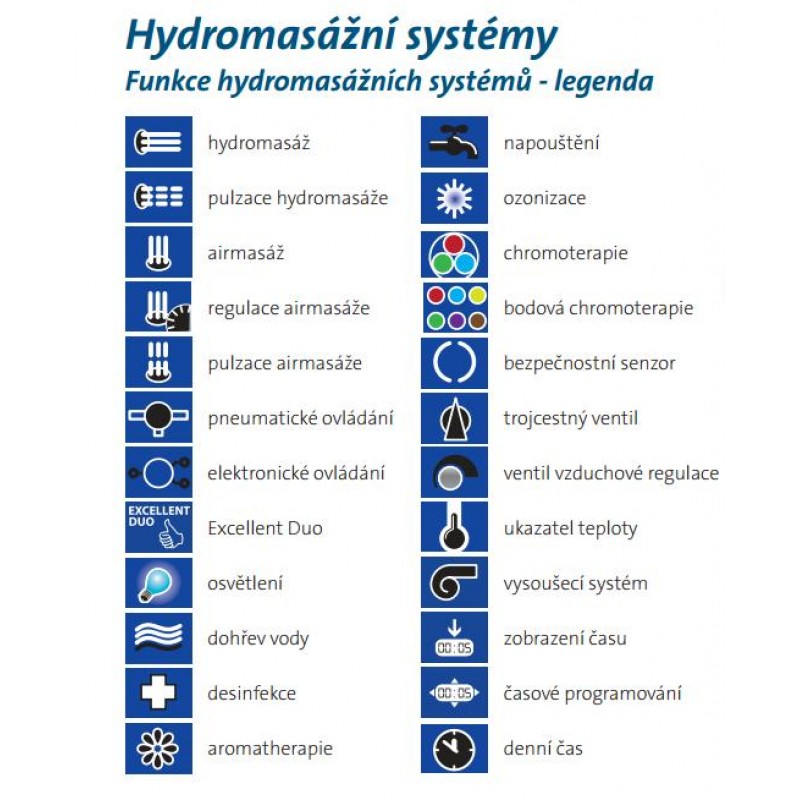 Výrobca si vyhradzuje právo upraviť počty trysiek v nadväznosti na tvar vane. Ovládač elektronický, hydromasáže - cyklace masáže.