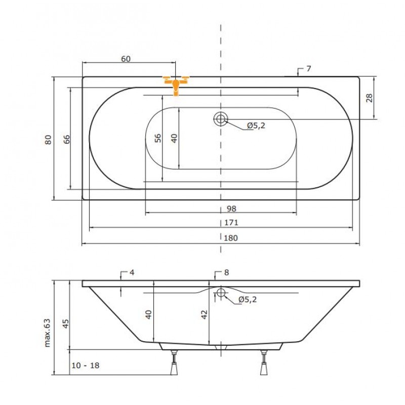 TEIKO Vaňa Barbados obdĺžniková 180 x 80 cm - HTP systém ECO HYDRO V212180N04T00211Rozmery: 180 x 80 x 42 cm