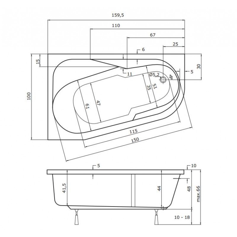 TEIKO Vaňa Bodam L rohová 160 x 100 cm - HTP systém DUO PNEU, ľavá V210160L04T01041Rozmery: 160 x 100 x 44 cm
