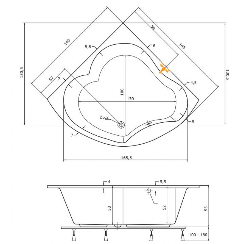 TEIKO Vaňa Diamant rohová 149x149 cm - HTP systém DUO PNEU V211149N04T02041Rozmery: 149 x 149 x 53 cm
