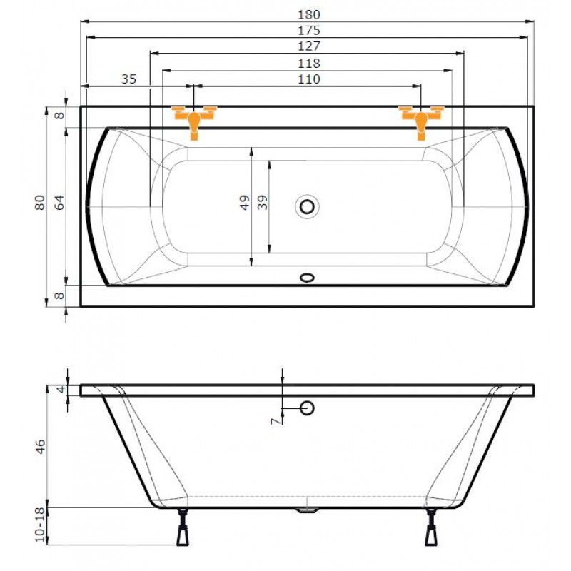 TEIKO Vaňa FENIX obdĺžniková 180 x 80 cm , akrylátová , biela V112180N04T07001Rozmery : 180 x 80 x 45 cm