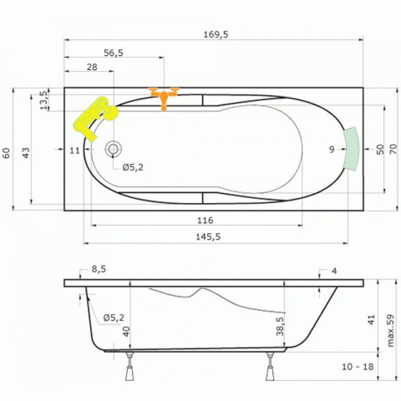 TEIKO Vaňa Ibiza obdĺžniková 170 x 70 cm, akrylátová, biela V112170N04T01001Rozmery: 170 x 70 x 39 cm