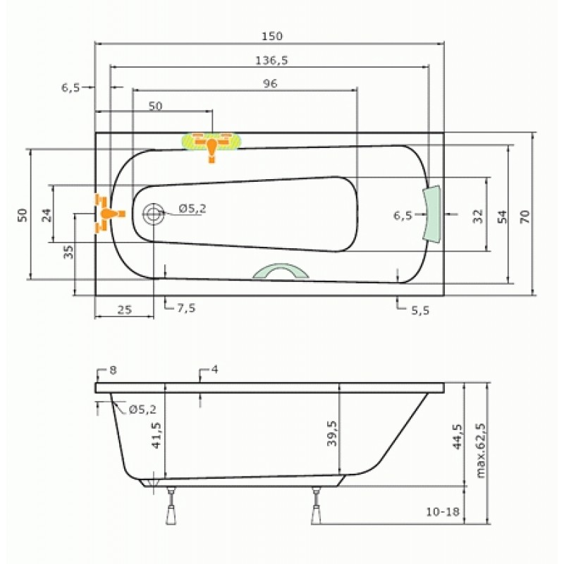 TEIKO Vaňa Klasik obdĺžniková 150 x 70 cm - HTP systém ECO AIR V213150N04T01221Rozmery: 150 x 70 x 41 cm