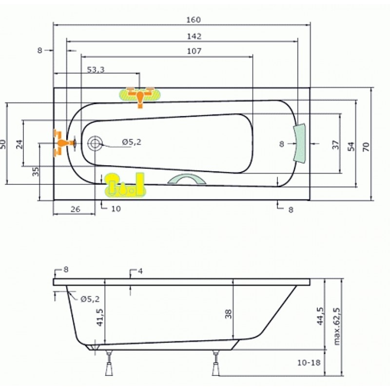 TEIKO Vaňa Klasik obdĺžniková 160 x 70 cm - HTP systém ECO HYDRO V213160N04T01211Rozmery: 160 x 70 x 41 cm