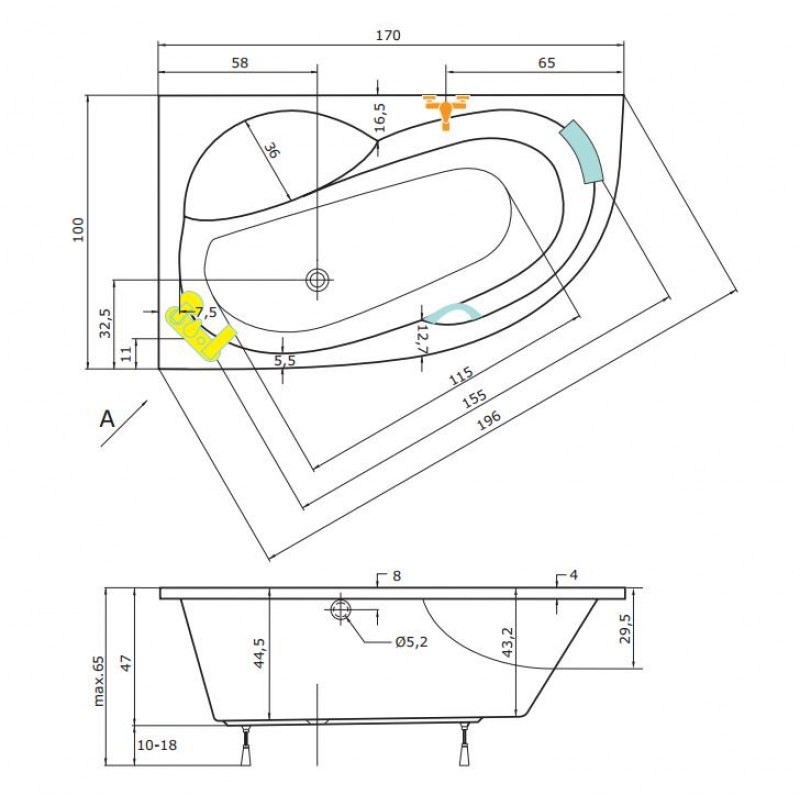 Výrobca si vyhradzuje právo upraviť počty trysiek v nadväznosti na tvar vane. Ovládač pneumatický, hydroairmasáž.