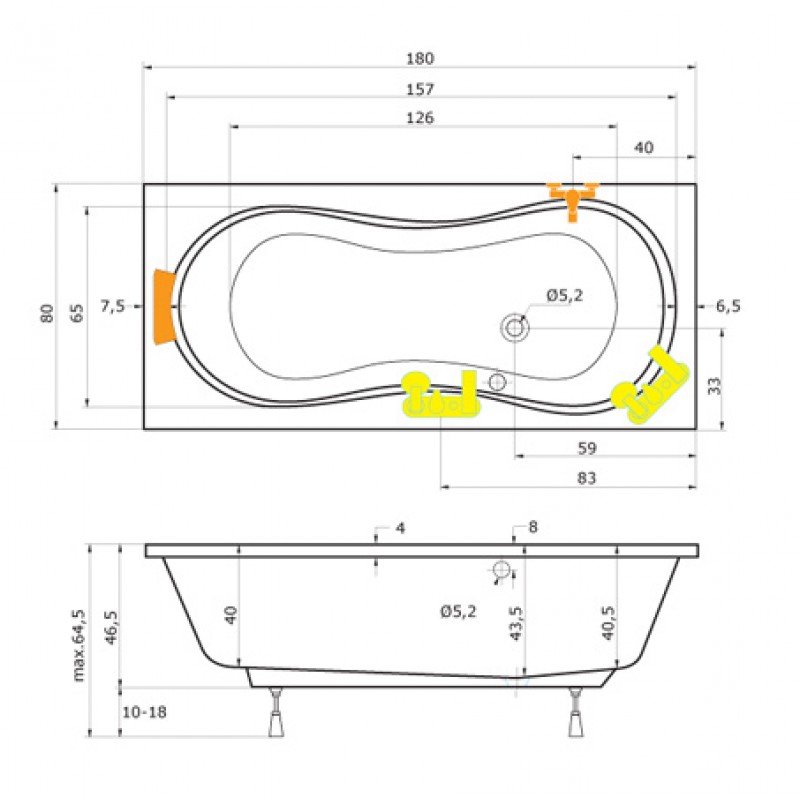 TEIKO Vaňa Orient obdĺžniková 180 x 80 cm, akrylátová, biela V112180N04T01001Rozmery: 180 x 80 x 43,5 cm
