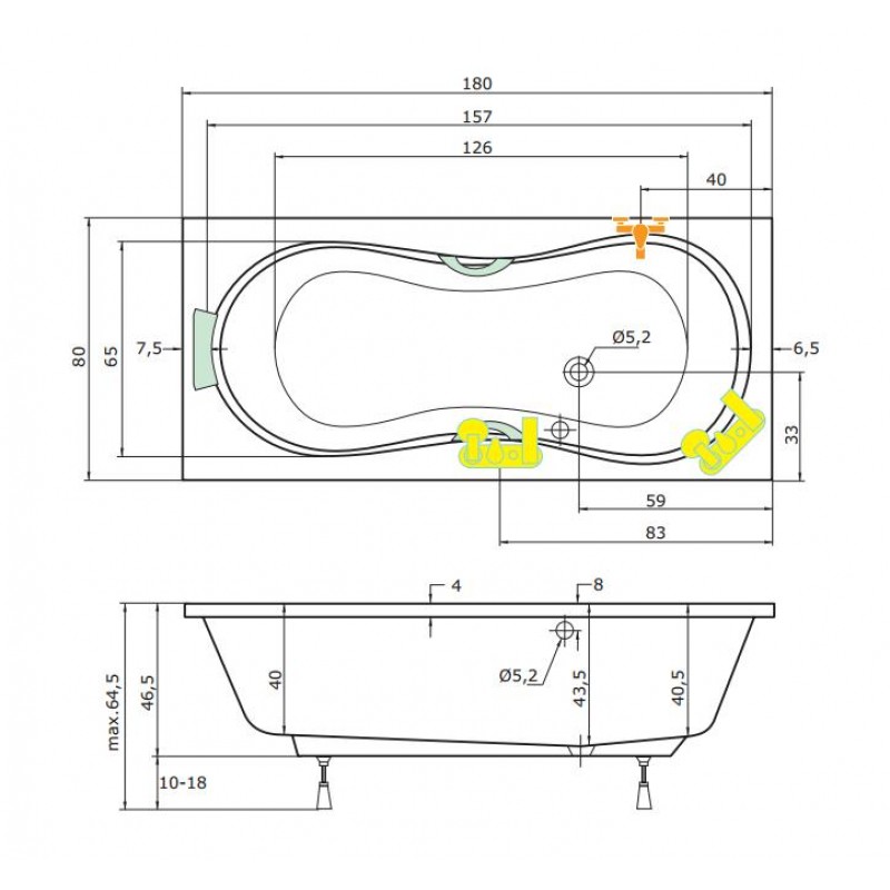 TEIKO Vaňa Orient obdĺžniková 180 x 80 cm - HTP systém ECO HYDRO V212180N04T01211Rozmery: 180 x 80 x 43,5 cm