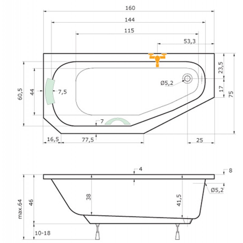TEIKO Vaňa Panama P obdĺžniková 160 x 75 cm, akrylátová, biela, pravá V110160R04T04001Rozmery: 160 x 75 x 41 cm