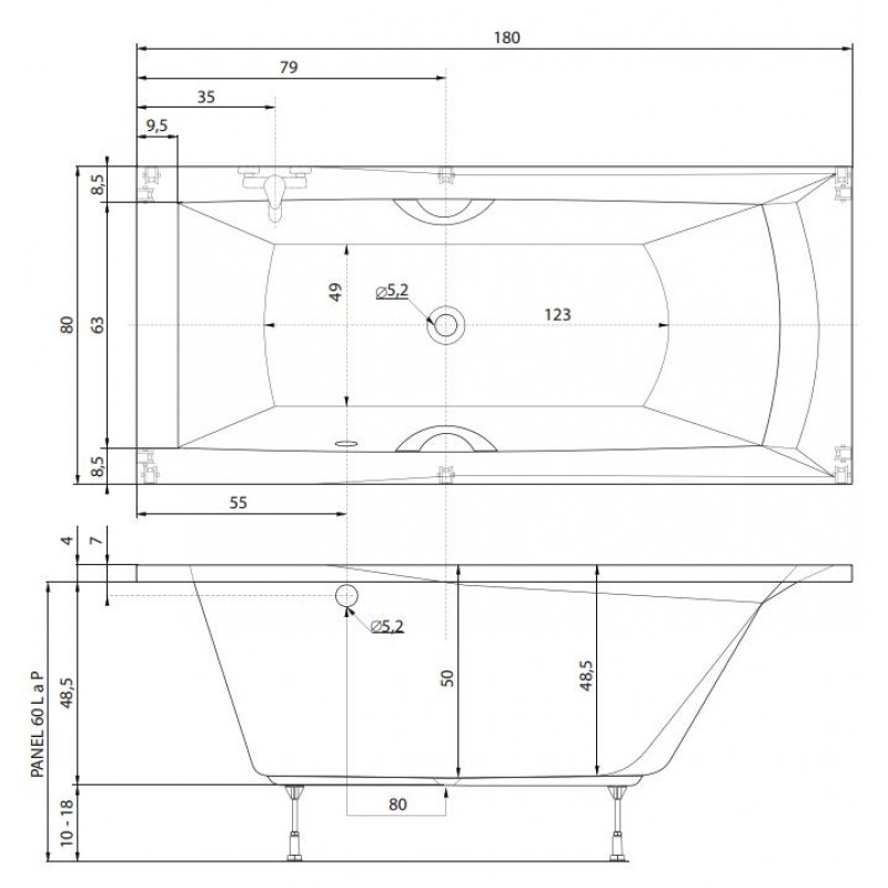 TEIKO Vaňa Porta 180 P obdĺžniková 180 x 80 cm - HTP systém BASIC V212180R04T02011Rozmery: 180 x 80 x 50 cm