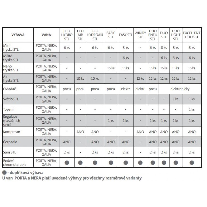 Nano trysky - tieto najtenšie dostupné trysky na trhu vynikajú o 40% vyšším masážnym účinkom ako bežné trysky. Môžu byť inštalované v akýchkoľvek častiach vane.