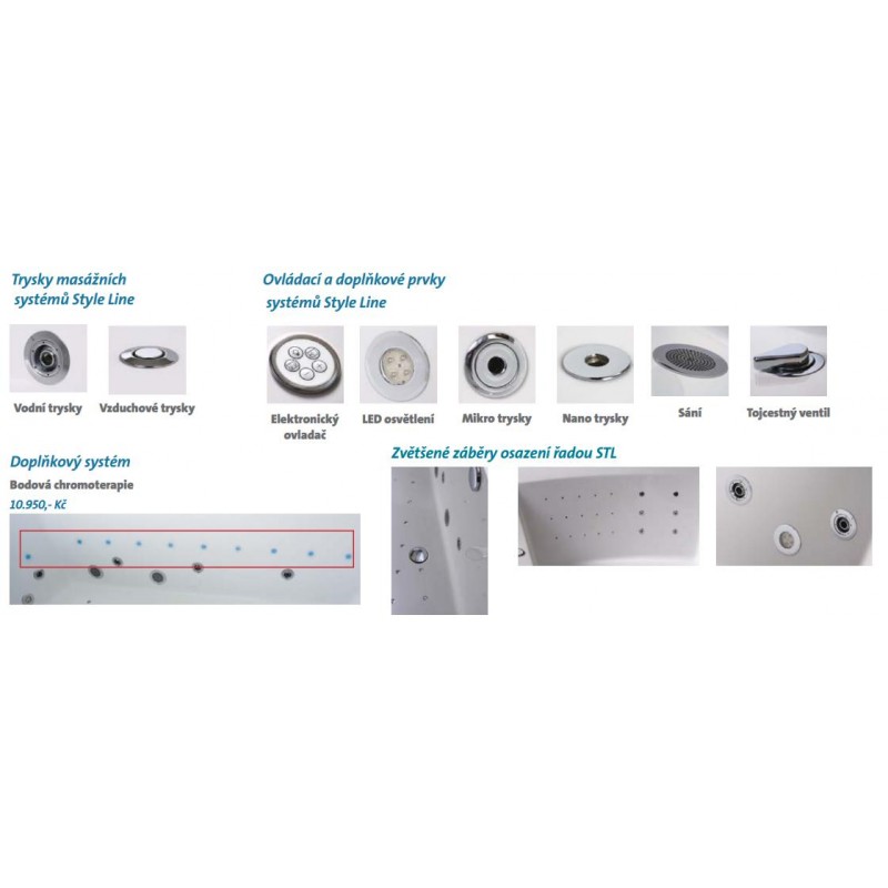 Vane radu Style Line je možné osadiť iba špeciálnym masážnym systémom s tryskami a ostatnými komponentmi v extra plochom prevedení. Tento systém je svoju funkčnosťou identický so systémami STANDARD, jeho označenie je však STANDARD 2010.