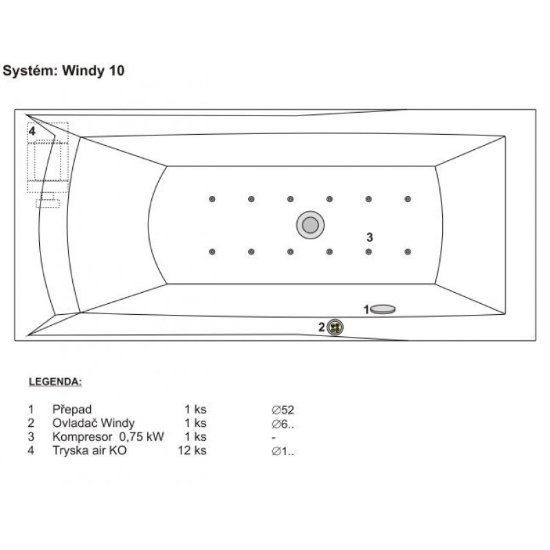 Výrobca si vyhradzuje právo upraviť počty trysiek v nadväznosti na tvar vane.