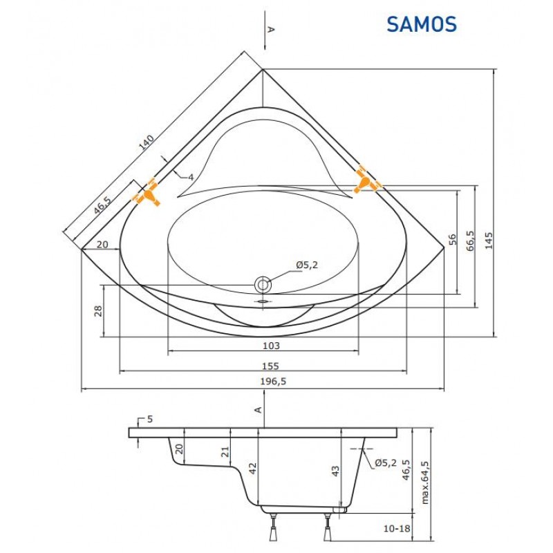 Symetrická akrylátová rohová vaňa Samos so sedacím miestom sa vďaka svojim rozmerom a tvaru radí medzi najpredávanejšie a najúspešnejšie výrobky spoločnosti TEiKO. Tento výrobok je možné doplniť čelným krycím panelom, ale aj vaňovými zástenami VZSAMOS 2/140 P, VZKO 1/80 P a VZKO 2/110 P. Pri modeli SAMOS je možná inštalácia hydromasážnych systémov v celom rozsahu aktuálnej ponuky radu STANDARD a vybrané systémy rady ECO.