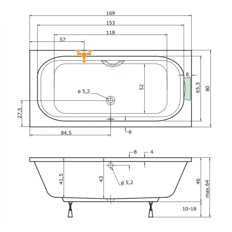 TEIKO Vaňa Tenerife obdĺžniková 170 x 80 cm - HTP systém ECO HYDRO V212170N04T06211Rozmery: 170 x 80 x 43 cm