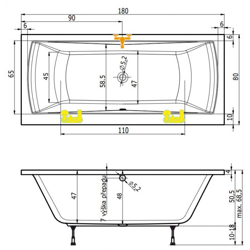 TEIKO Vaňa Titan obdĺžniková 180 x 80 cm, akrylátová, biela V113180N04T06001Rozmery: 180 x 80 x 48 cm