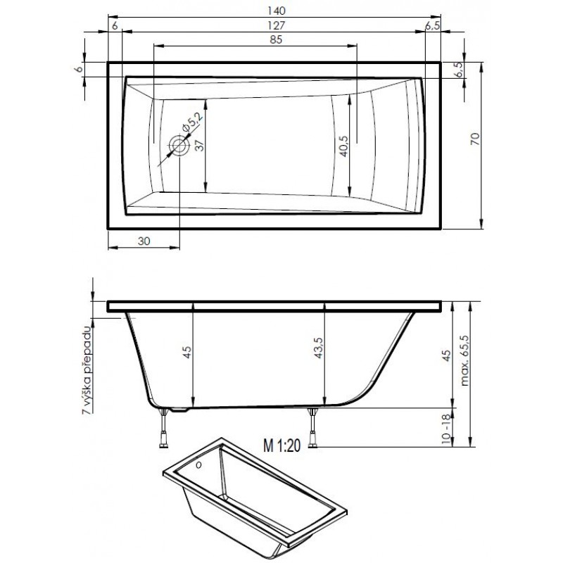 - Pro odeslání do Česka navštivte TEIKO Vana Trend obdélníková 140 x 70 cm, akrylátová, bílá V113140N04T01001