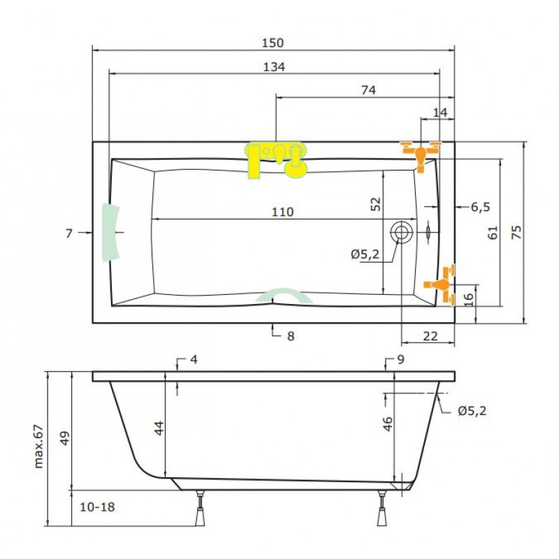 TEIKO Vaňa Vela obdĺžniková 150 x 75 cm - HTP systém ECO AIR V212150N04T01221Rozmery: 150 x 75 x 46 cm