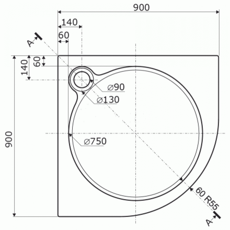 Štvrťkruhová sprchová vanička VESTA sa vyrába v troch rozmeroch v prevedení s hladkým povrchom.