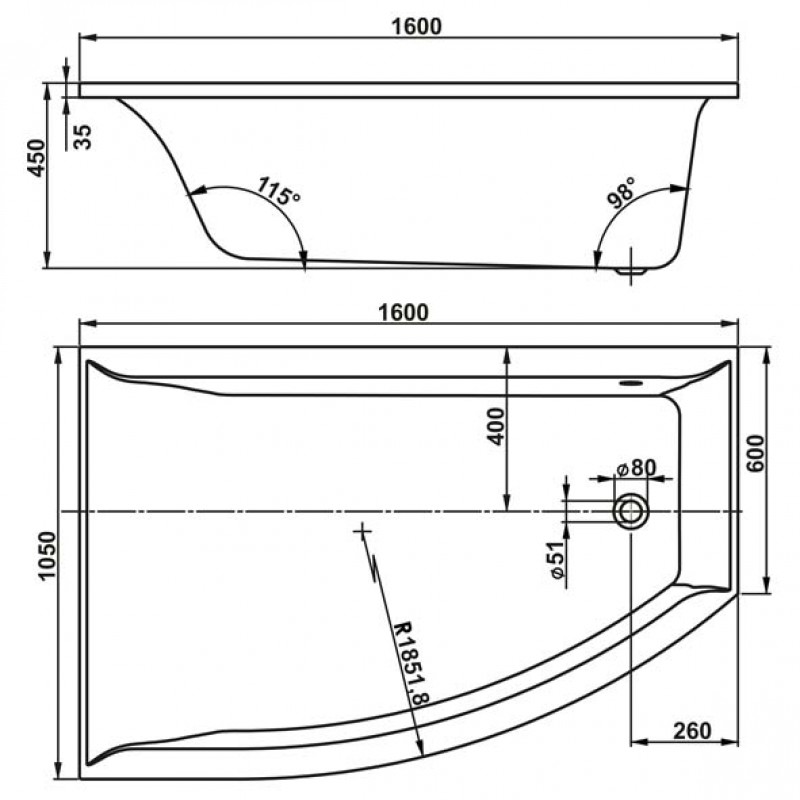 Vagnerplast VERONELA vaňa 160x105x45 ľavá VPBA160VEA3LX-01/NOPrevedenie : rohová