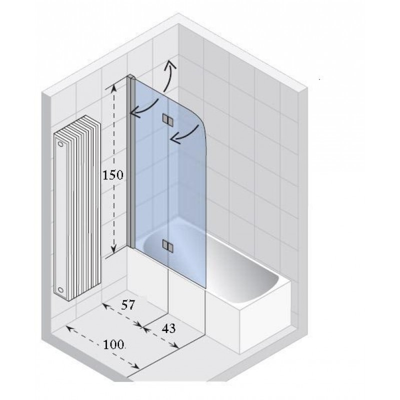 Vaňová zástena sa skladá z jednej pohyblivej časti (57x150cm) a jednej pevnej časti (43x150cm) s povrch.úpravou skla Riho Shield