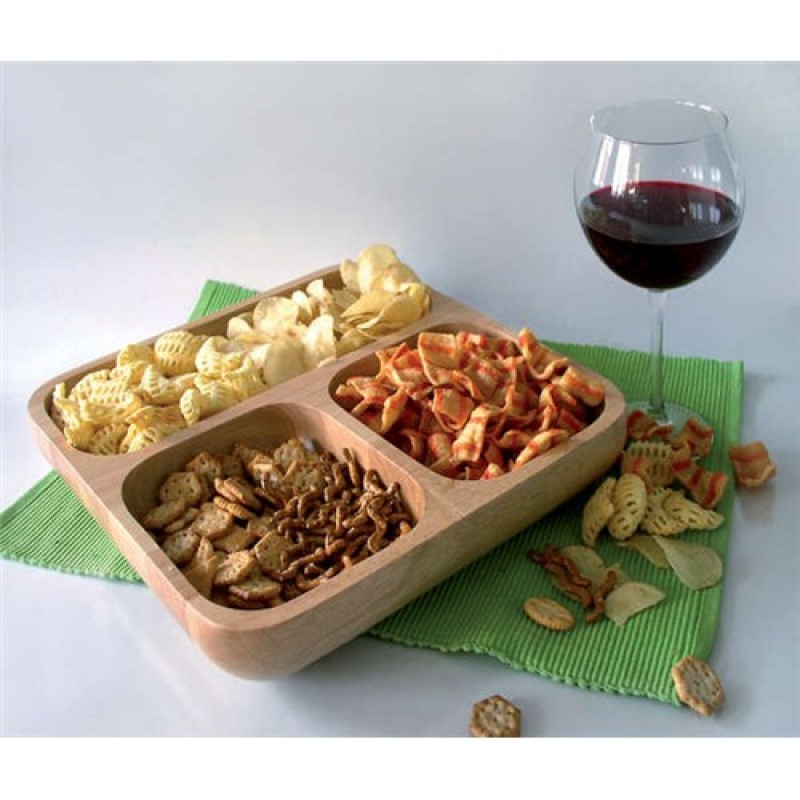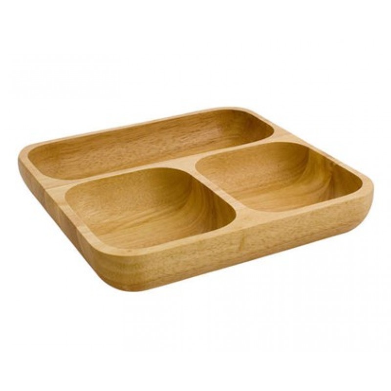 VETRO-PLUS Delený servírovací podnos BRILLANTE 27BN2090Servírovací podnos z gumovníkového dreva, rozmery podnose - 31,5x31,5x5,7cm. Podnos má tri delené časti, jednu väčšiu a dve menšie. V kolekcii Brillante ponúkame mnoho doplňujúcich výrobkov z gumovníkového dreva.
