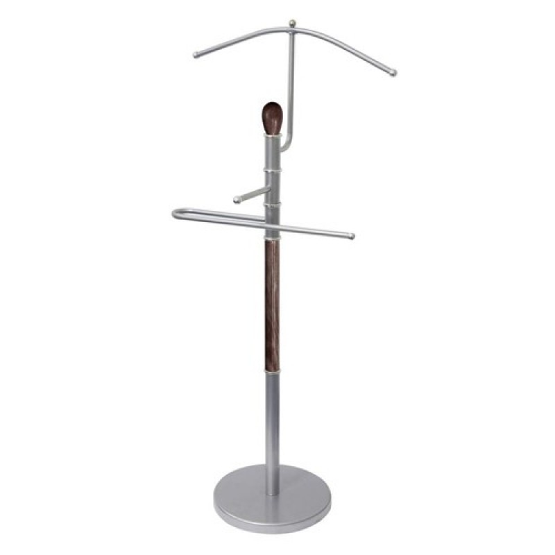 Nemý sluha chróm + drevo tmavo hnedá farba, praktický pomocník na odkladanie odevu, matný kovový povrch v kombinácii s drevom, výška sluhu 107 cm, stabilná základňa.Výška (cm): 107