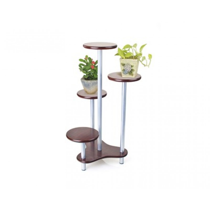 VETRO-PLUS Stojan na kvety, tmavé drevo 22EP8597WLNStojan na kvety so 4 odkladacími doskami. Veľkosť v zostavenom stave 43x43x72,5 (výška) cm, 4x oceľové rúrky s chrómovým nástrekom s MDF doskami v priemere 19cm x 15mm (farba tmavé drevo). Nosnosť 10 kg.
