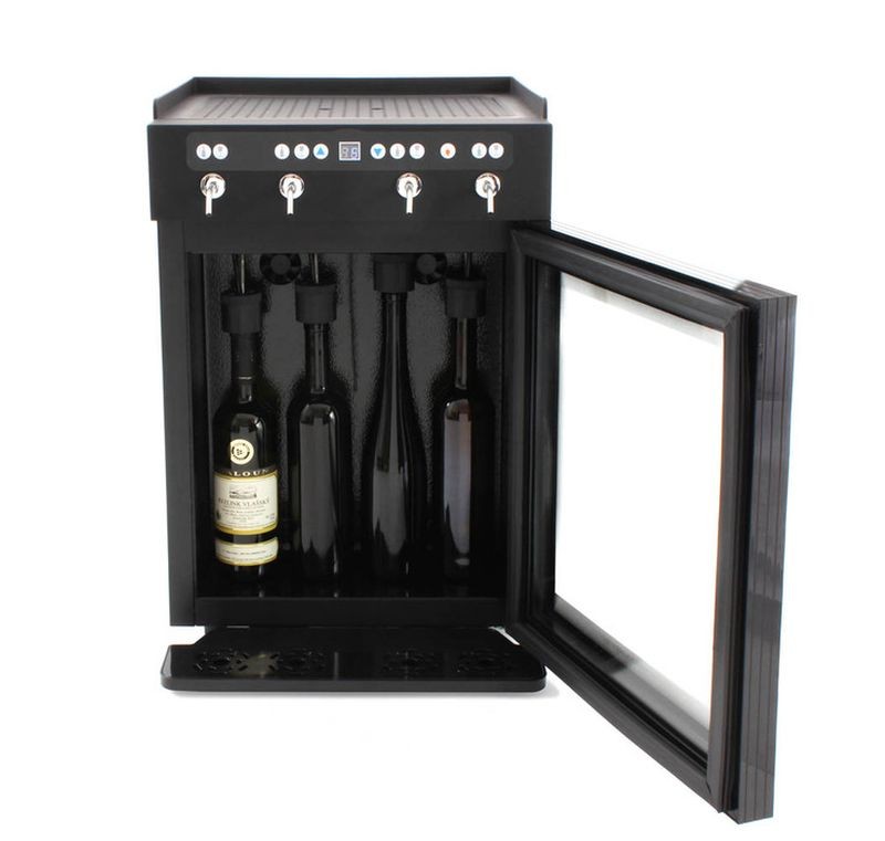 VinoTek VT4 Automatický dávkovač vína na 4 fľaše 008010003VinoTekVT4 vám umožní štýlovo prezentovať a servírovať až 4 fľaše červeného alebo bieleho vína. Vďaka svojej kapacite je tento automatický dávkovač vína vhodný do stredne veľkých gastro prevádzok. Ocení ho každý, kto chce zvýšiť predaj akostného a prívlastkového vína. Vaši hostia už nemusia váhať, či si zaobstarať fľašu vína ktorú nepoznajú. S VinoTek im môžete dať jednoducho ochutnať z niekoľkých vín a pomôcť im tak s výberom.