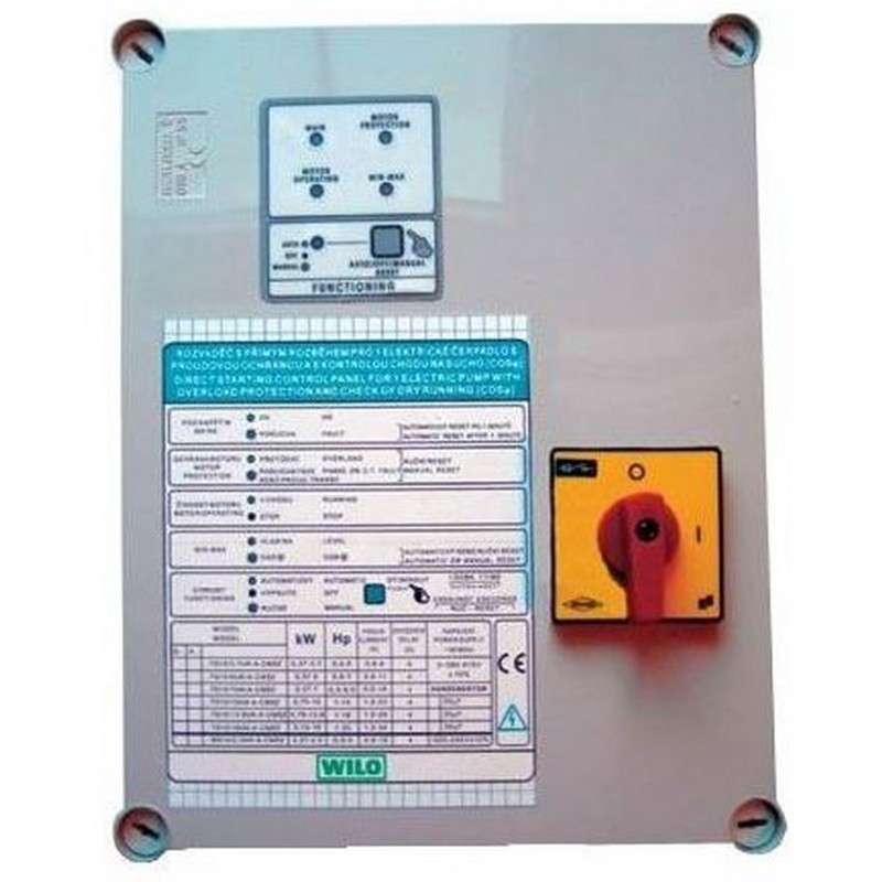 Spínacie skrinky pre všetky jednofázové čerpadlá. Vďaka jedinečnej neustálej kontrole plne chráni čerpadlo proti nedostatku vody (chod nasucho). Istí motor proti preťaženiu. Odpadá tak náročná montáž elektródového zariadení.Skriňa je vybavená hlavným vypínačom.