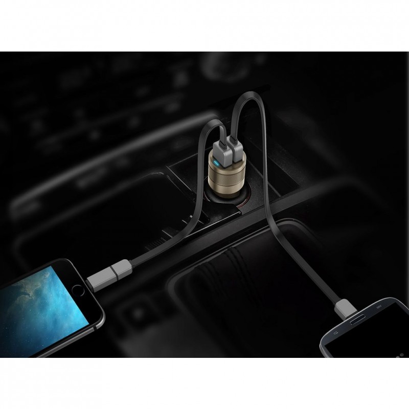 Moderná duálna 4,8A nabíjačka do auta s inteligentnou identifikáciou výstupu na každom porte USB. Nabíjačka je vhodná pre smartphony a tablety, a dokáže nabíjať dve zariadenia súčasne. Z dôvodu maximálnej bezpečnosti má táto rýchla nabíjačka teplotné ochranu, ochranu proti skratu, ochranu proti vstupnému prepätiu a ochranu výstupu pred nadprúdom.