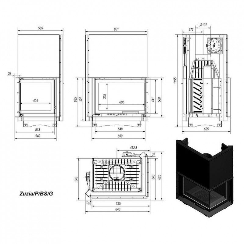 KRATKI ZUZIA/P/BS/G 16 kW krbová vložka teplovzdušná, bočné pravé sklo s výsuvomVýkon nominálny: 16 kW